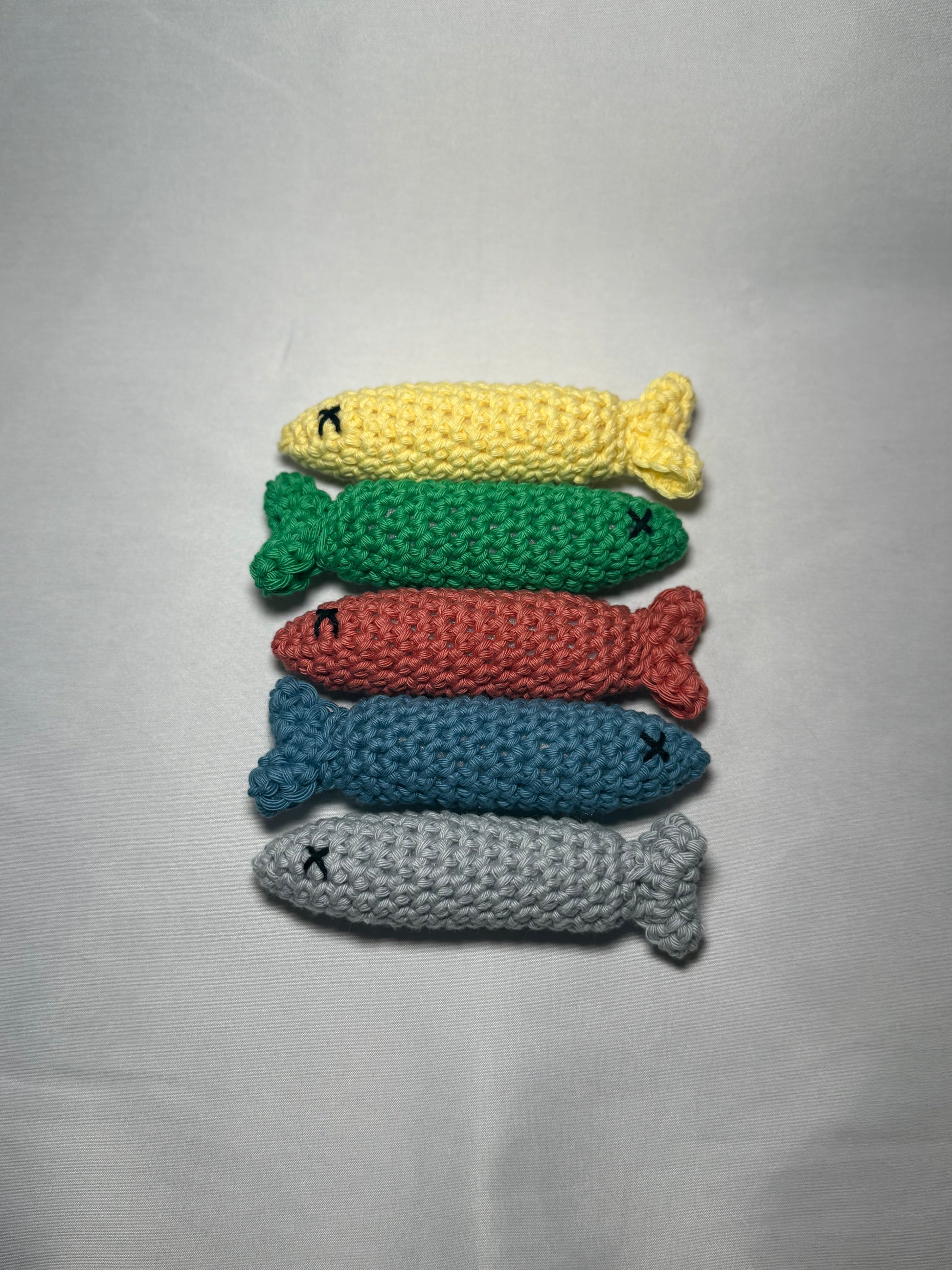 Our handmade crochet amigurumi 'Silvervine Sardine' cat toy packs an extremely powerful punch!